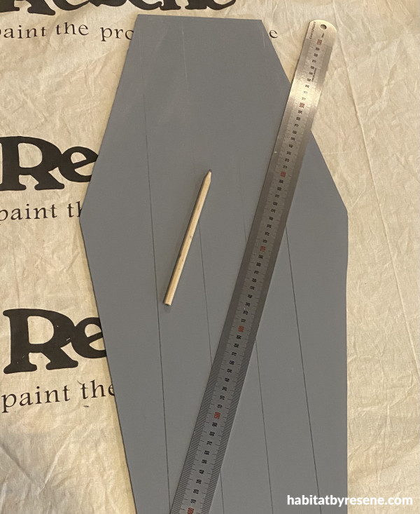 Step 5: Take your ruler and draw the lines onto the coffin ready to paint.