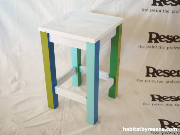 Step 1: Start by sanding your old stool with a medium grit sandpaper. Wipe away any dust and prime with one coat of Resene Quick Dry.