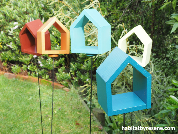 The great thing about these modern birdhouses is that you can sit and watch the birds inside them right from your cosy chair in the window. This simple design also means they are easy to make, so you can make one, or a whole lot in all of your favourite Resene testpot colours.