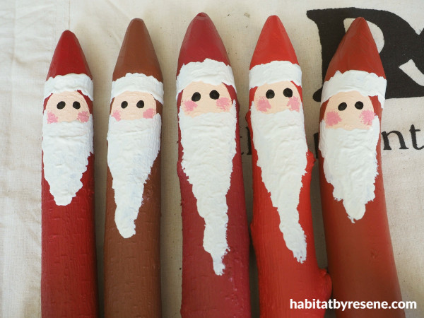 Step 5: Fill a pot, bucket or bowl with soil or sand and push your Santa sticks into it. You could play around with adding foliage or Christmas tree baubles to cover the soil too.