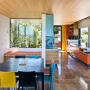 This is the kitchen and dining space as created by architect Gerald Parsonson and the homeowners, who regarded colour and architectural design as equally important.