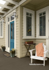 Double duty: Our love affair with the sun, smaller sections and desire for good access to outdoor living spaces can sometimes lead to a clash of purpose. In this case, the front door of this house sits right beside a deck that’s used for outdoor living. Colour can help either define or integrate these types of areas, enhancing the appeal of both beyond measure.