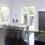 Peaceful and serene, the marriage of three very light colours gives this dining room a sense of tranquility. On the walls the owners have used Resene Ecru White, a classic barely-there beige with a tiny shot of green. Contrasting beautifully, crisp, cool Resene Black White makes the trims stand out.
