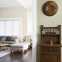 Crisp and cool, white never goes out of fashion and, of course, there’s white, and there is white. Even a quarter or half formulation can bring a whole new note to the setting. Here Resene Merino, a light, versatile off-white with a green undertone has been used in both areas to tie them visually together. Resene Quarter Merino is on the ceiling and trims.