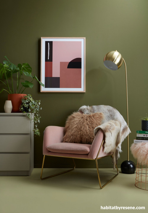 What it looks like: Deep olive hues are back and Resene Waiouru is one of our favourites. This rustic green is rich and timeless, swallowing light to create a moody atmosphere.