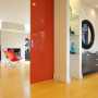 This door is a clever device, ‘flashing’ out of its cavity to close off the dining room and living area of an interior designed by Liz Kerby of Workspace Design. It’s actually painted in Resene Kamikaze.