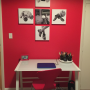 This wall is painted in Resene Roadster and features photos of Christian and his favourite pieces of sports gear. Monnie had them printed onto canvas.