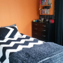 Eleven-year-old Ethan had free reign to design his bedroom scheme. He chose a feature wall of Resene Hyperactive, background wall in Resene Half Rakaia and ceiling in Resene White. "We were a bit unsure of his choices, but it works and looks fabulous!" says mum Alina.