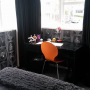 The orange chair is a nice choice, tying the scheme together. Perhaps Ethan has a future in interior design!