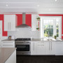 * And, of course, one of the easiest surfaces to repaint in a kitchen is the wall – choose a rich appetite-stimulating red to superbly ‘frame’ your white cabinets, or maybe a moody and calming deep grey. The choices are vast.