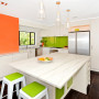 * Paint the front of an island bench to echo accent colours used throughout an open-plan living area.