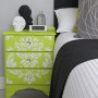 Use low-tack masking to keep your stencil in place. Use a sponge for stencilling, not a brush, and make sure you don't overload it, or the paint will bleed underneath the edge of the stencil. Greer stencilled this bedside cabinet using Resene Spritzer and Resene Alabaster.