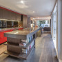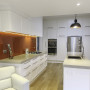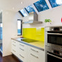 Here’s another example of a pop of colour, used on a back-painted splashback, giving a timeless design and edgy twist.