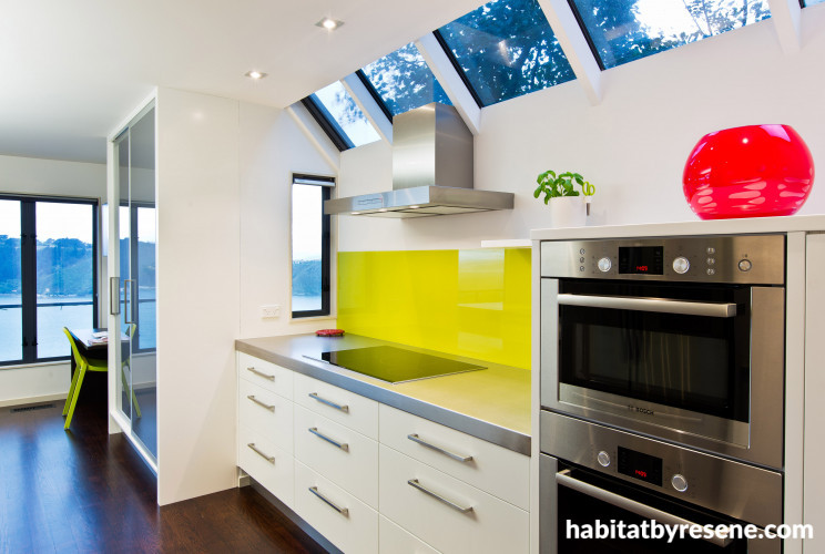 If you’re using a bright yellow or orange on a back-painted glass splashback (make sure you use Resene Imperite for this), the glass will further accentuate the intensity of the colour, giving it an even more luminous, sunshiny quality.