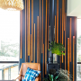 Homeowner Michele Powles uses colour and texture in clever ways to decorate her home. This feature wall is painted in Resene Blue Charcoal, with timber pieces painted in WoodX Kauri Gold from Resene.