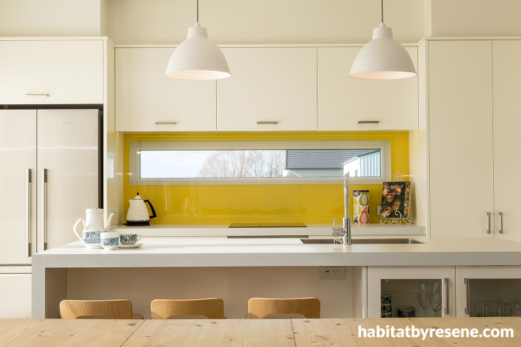 Sometimes less is more. A kitchen splashback in Resene Bright Lights is a zesty slice of colour in this naturally sun-filled kitchen.