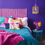 Rich saturated colour gives a jewel-like decadence to this bedroom. It uses Resene Pukeko walls, a Resene Smitten matchstick headboard, a Resene Flashback lighting shade (made from a bird cage), a Resene Centre Stage vase, and a Resene Seeker side table. See how stylist Claudia Kozub put this together.