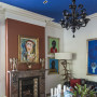 There are coloured ceilings and then there's this! Designer Terry Hogg of Lick Light+Colour created this daring combo for his client using Resene Decadence on the ceiling and Resene Desperado on the chimney breast. The walls are Resene Black White.