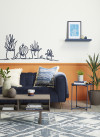 A deep blue sofa anchors the room, while a playful succulent mural in Resene Midnight Express creates a meeting or centre point for the wall’s creative spirit.