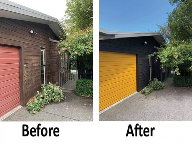 This Christchurch home has new street appeal with a fresh coat of Resene Element and zesty Resene Hot Toddy on the garage door