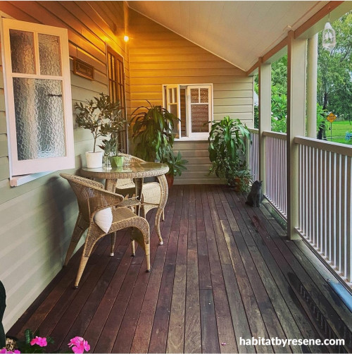 Bridget’s exterior makeover using Resene Nebula isn’t quite finished – the trims are still to go - but we couldn’t resist showing how this grey blue turned out. “We love the colour,” says the Queensland homeowner. “It’s still in progress as we’re doing it all ourselves. We’re going to use Resene Swamp on the trim,” she adds.