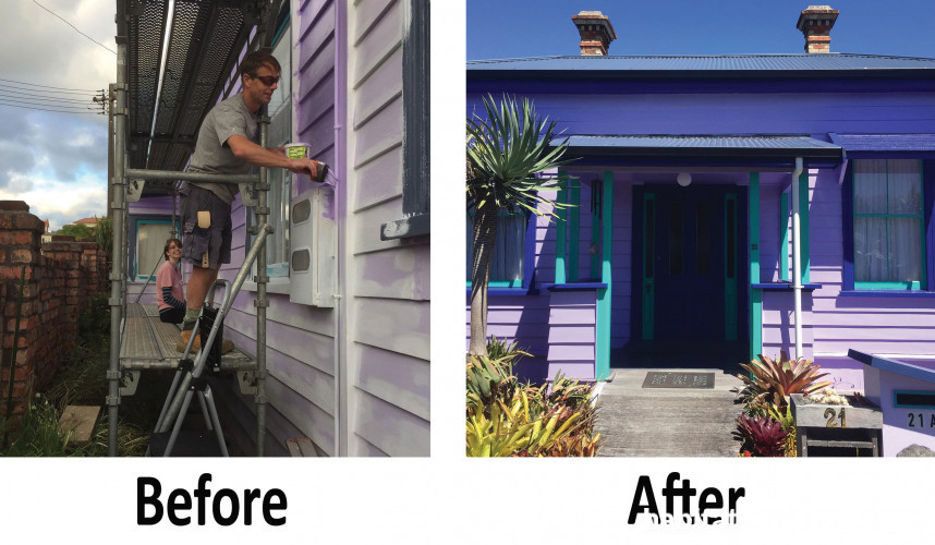 Artists Jason and Shaarina at Koru Koha Studios took on a different kind of painting project, when they changed the exterior colour of their home.