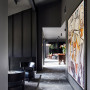 One of the challenges faced by the architects was the existing roofline, which was described as "bitsy and messy". To address this, a steel fascia pergola structure was created to envelop the building, giving it a cohesive appearance while extending the roofline and providing shelter at the entrance. This also aimed to transform into a private northern courtyard over time as plants grow beautifully to the roofline.