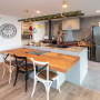 Catherine: I wanted to create a cosy and inviting space for JK and Fiorella by including natural stone elements with layers of texture and visual detail and a neutral colour palette.