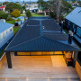 Catherine: The soffits were painted in Resene Element to complement the COLORSTEEL® in FlaxPod Matte. The matte finish was something that we all agreed upon as a key feature to the overall aesthetics of the exterior of the house for a much less reflective finish with refined shadow lines creating an architectural look. In keeping with the dark palette, the fence was stained in Resene Woodsman CoolColour Shadow Match.