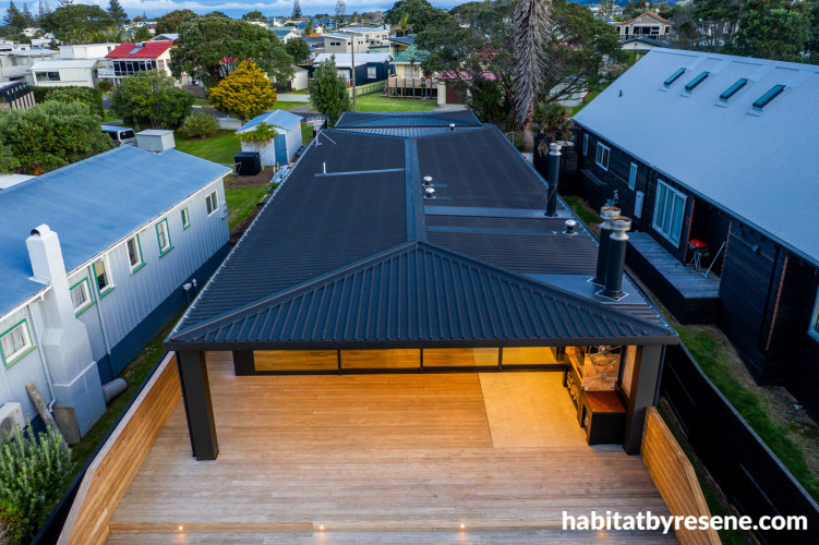 The COLORSTEEL® FlaxPod Matte roof is a nod to the traditional Kiwi bach. The profile is Metalcraft Metrib 760.