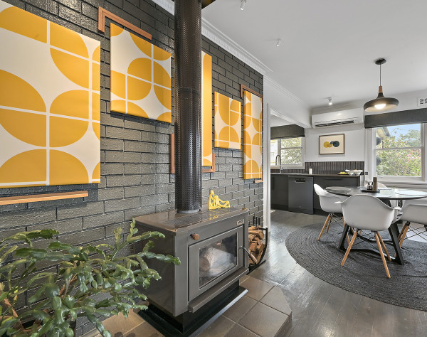 “Adding to the room’s personality, is the salvaged vintage door with its amber glass, which although not original to the home, looks as though it’s always been there. So too with the ceiling light, which was rescued from an old caravan and converted to an LED. Using authentic vintage items in this project was a great way to highlight the era of the home while practicing sustainable design, which is something I’m passionate about.”
