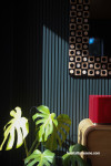 Resene Lustacryl semi-gloss waterborne enamel tinted to Resene Black was used on the doors and trims throughout the home offering a modern touch while contrasting with the birch plywood walls.