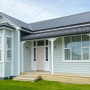 This enchanting villa is painted in Resene Half Periglacial Blue, with the front door painted in Resene Blanched Pink. Trims are painted in Resene Black White.