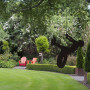 A hanging sculpture by artist Jane Downes gives the garden a playful feel.