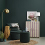 Create instant glamour by painting walls in rich ‘masculine’ colours such as Resene Palm Green, an old college green which evokes old world charm. Floor painted in Resene Greige, cabinet in Resene Double Spanish White with stripes in Resene Vintage, large plant pot in Resene Palm Green, small plant pot in Resene Cutty Sark and lamp in Resene Midwinter Mist. Other vases in Resene Bubble White, Resene Blue Smoke and books in Resene Deep Teal and Resene Rivergum. Velvet chair, cushion and ottoman from Contempa, lamp from Freedom, throw, animal cushion, rug and artwork from Kmart, rose gold candle from Illumina. Project by Annick Larkin, image by Bryce Carleton.