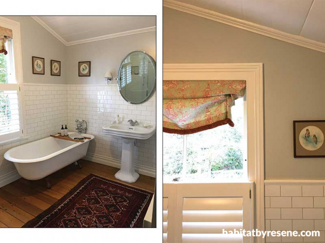 By deciding on a colour – Resene Alabaster – known for its reflective, silvery grey sheen, Clare and Raewyn were able to create a timeless, chic look for the bathroom in keeping with the late-1800s villa. The ceiling, skirtings and trims are in Resene Alabaster.