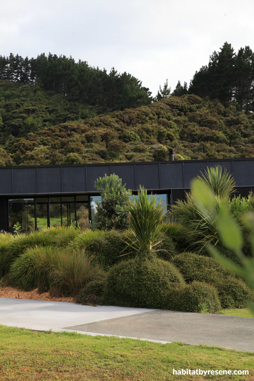 Claire’s love of small surprises of colour flows from the outdoors in at ‘The Black Box’, her home located in The Sanctuary, an (aptly named) gated community five minutes from Mangawhai. Claire and her family have been visiting the area from Auckland for a decade. The Talbots spent four summers sharing a bach with friends, but after that, and with growing children (now 15, 13 and 10), it was time to find their own space.