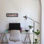 The office is light and airy painted ceiling to floor in Resene Sea Fog.