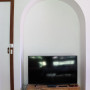 Throughout the home, elegant wall arches lend character and charm to every room, including the sitting area, where the TV is thoughtfully positioned to complement the space. The walls are painted in Resene Sea Fog.