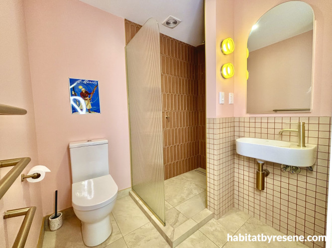 A bold choice of Resene Sakura brings a pop of playful pink to the bathroom.