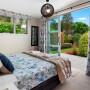 The double bedroom has more extensive views of the stunning gardens, accentuated by the interior walls in Resene Tapa and ceiling in Resene Alabaster. A challenge Lyn faced was keeping the décor relevant over a long renovation period of several years. She said Resene paint provided a timeless look that was constantly on trend.