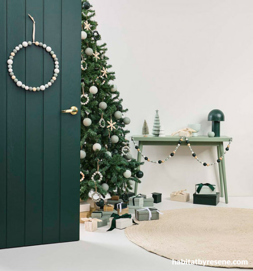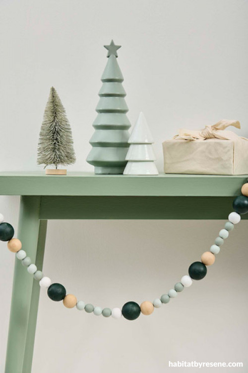 If you aren’t quite ready to take the plunge and paint your front door green, you could do this to some old furniture instead. If you have a small table lying around that may need a jazz up, this would be perfect to paint in your chosen shade of green. Resene Xanadu is our pick, a mysterious grey green that will perfectly complement the rich pine of your Christmas tree. Pop some decorations on the table for your festive display, and if you’re playing host this Christmas, use it as a designated gift table! Hang a DIY beaded garland on the table for some extra fun and cheer.