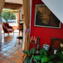 Resene Jalapeno is full of character and makes a statement on the lounge and hallway walls. The ceiling and side walls are Resene Blanc. “Resene Blanc was recommended to us and works well with the floor tiles, blue joinery, terracotta and the cedar doors,” says Helen.