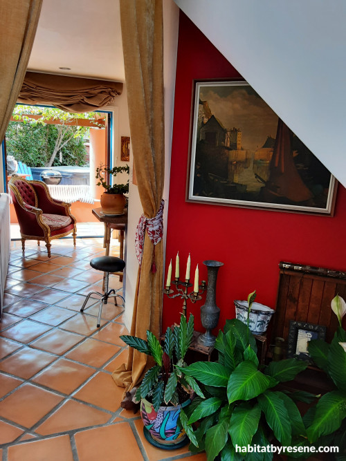 The home’s exterior hints at its interior warmth. A custom terracotta colour was created for the couple by their local Resene ColorShop in Takanini almost 30 years ago. Resene has plenty of terracotta tones to get a similar look – try subtler terracotta colours like Resene Tuscany and Resene Sante Fe, or richer tones like Resene Moccasin and Resene Raging Bull.