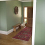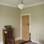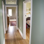 A view down the hallway towards the Resene Half Oilskin main bedroom. The wall colour here is Resene Zylone Sheen tinted to Xanadu.