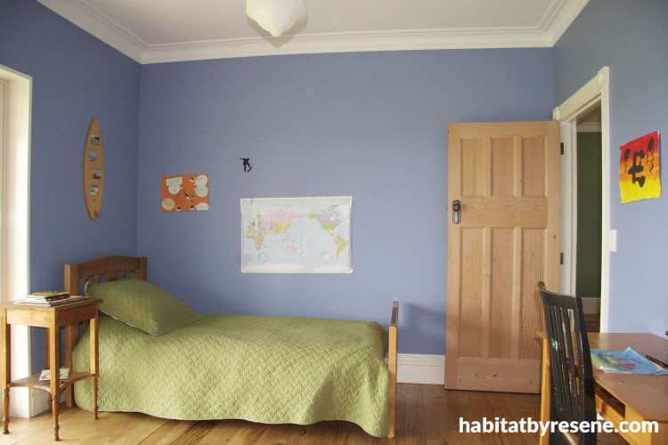 Connor's bedroom is more subdued in Resene Sisal.