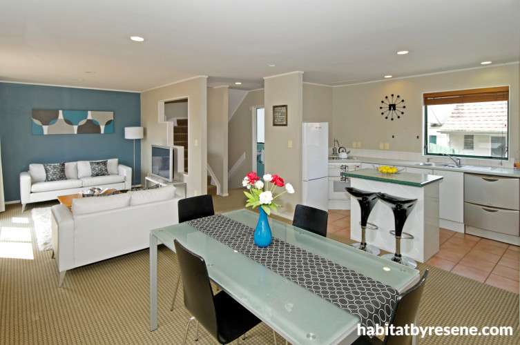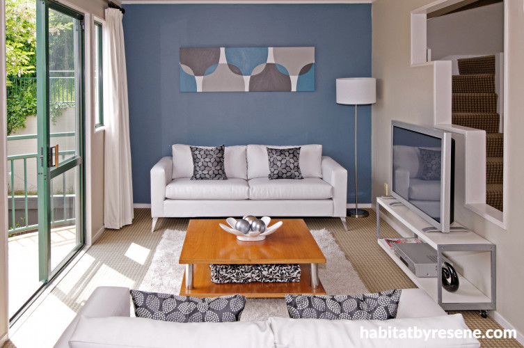 Chris and Lesley bought their three-bedroom townhouse in 2004 and, after living with the all-white interior for a while, decided to give it some colour and personality. Inspired by the Mediterranean, they painted the walls in Adriatic blues (Resene Calypso, Resene Mariner and Resene Glacier), earthy Resene Echidna and bold Resene Clockwork Orange. Any remaining walls were given a subtle warmth with Resene Double Blanc, a blend of rose beige and warm white.