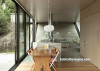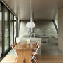 Keeping costs under control was another reason for choosing to build with cheaper materials such as particle board and fibre-cement panels. Strandboard is a form of oriented particle board made in New Zealand from wood flakes bound together with a formaldehyde-free resin, so it has a ‘green’ advantage, too. A tight budget also meant building a small home. Not that this was a limitation – in fact, it played into the hands of the designer: “The strategy is to have a reasonably small interior which makes full use of the surroundings.” Customary Pacific architectures are ‘porous’, an approach that Yates employs in all her design work. Here, this appreciation of borrowed spaciousness is explored with louvre walls and doors that slide away to open up to the setting. The sense of separation between occupancy and the outside is eroded, allowing an in-between state of being. The home becomes a volume that collects the sights and sounds of the environment. A timber deck at the front of the house is a space to relax in and be part of the surroundings. Fantails flit through pohutukawa; the sound of waves booms up through a living curtain of manuka; and sunlight skitters on the white pebble garden.