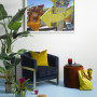 Evoking the vintage glamour of Vegas, Amber's gone with bright, primary hues in slightly dirtier shades for this room setting, seen through the accessories, luxe velvet furnishings and photograph print.