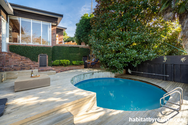 The pool door was given a new lease of life with Resene Lustacryl semi-gloss tinted to Resene Ironsand.